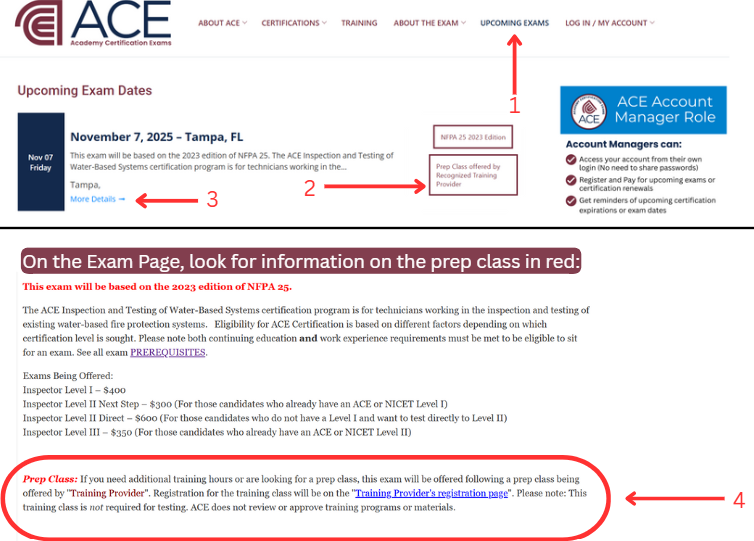 Note: The training class is not required to take the ACE exam. Academy Certification Exams (ACE) and the training provider are not affiliated but may partner to offer a seamless process for participants. ACE does not review or approve any training programs or materials and makes no guarantees of success in passing the exam based on participation in any training class.
